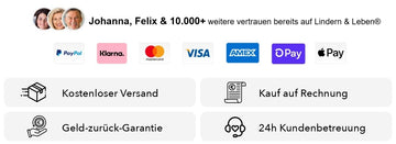 Wir haben eine risikofreie 30-Tage-Garantie, die erst dann beginnt, wenn Sie das Produkt erhalten haben! Wenn Sie aus irgendeinem Grund keine positive Erfahrung machen, kontaktieren Sie info@lindernleben.de und wir werden Ihnen helfen.